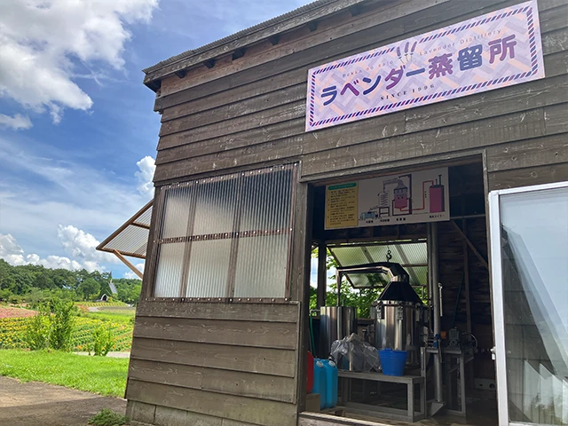 ラベンダーの香りに包まれながら蒸留風景を見学しよう。 ラベンダー畑を丸ごと刈り取り、その日のうちに「ラベンダー蒸留所」でラベンダーオイルとラベンダー水(蒸留水)を抽出する1年に1回の特別な日。 抽出したオイルや蒸留水は1年間冷暗所で熟成させメインハウス1階売店にて販売しています。