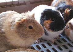 可愛らしいネズミの仲間のモルモットだよ。あたたかくて柔らかいよ~。 ちょっとビビリで逃げるけど「あにまるたっち(どうぶつとのふれあい)」の時間に触れあえるよ!