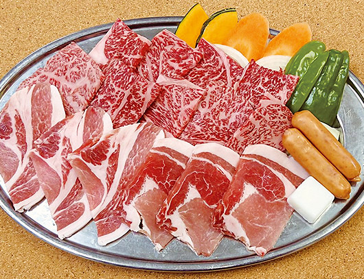 黒毛和牛肉、豚ロースに野菜の付いた「ぼっかセット」