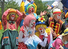クラウンたちが得意のパフォーマンスで楽しませてくれます。