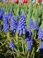 チューリップとムスカリが牧歌の景色をビビッドに彩ります。